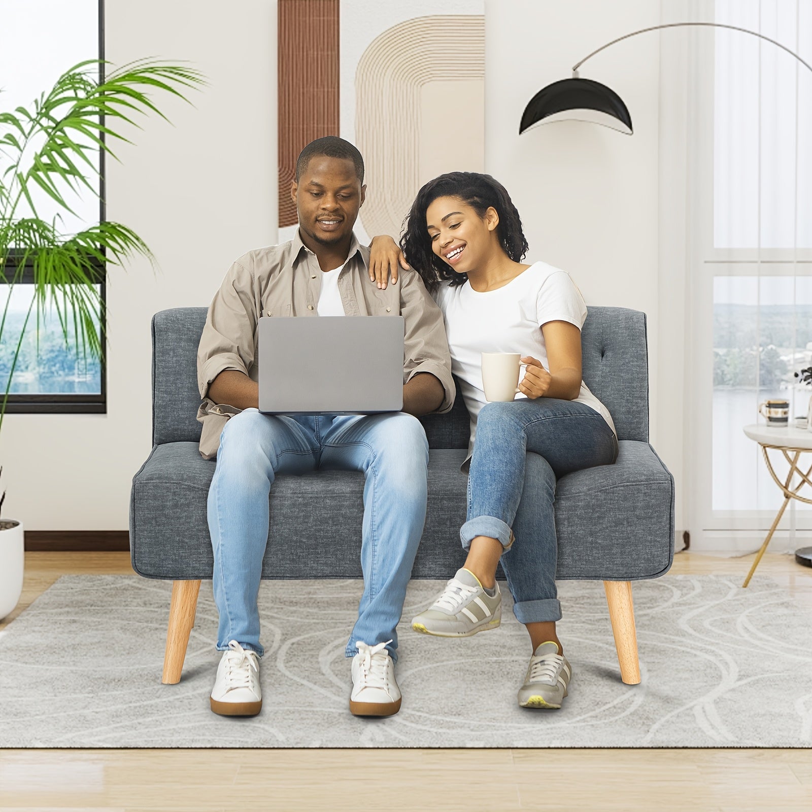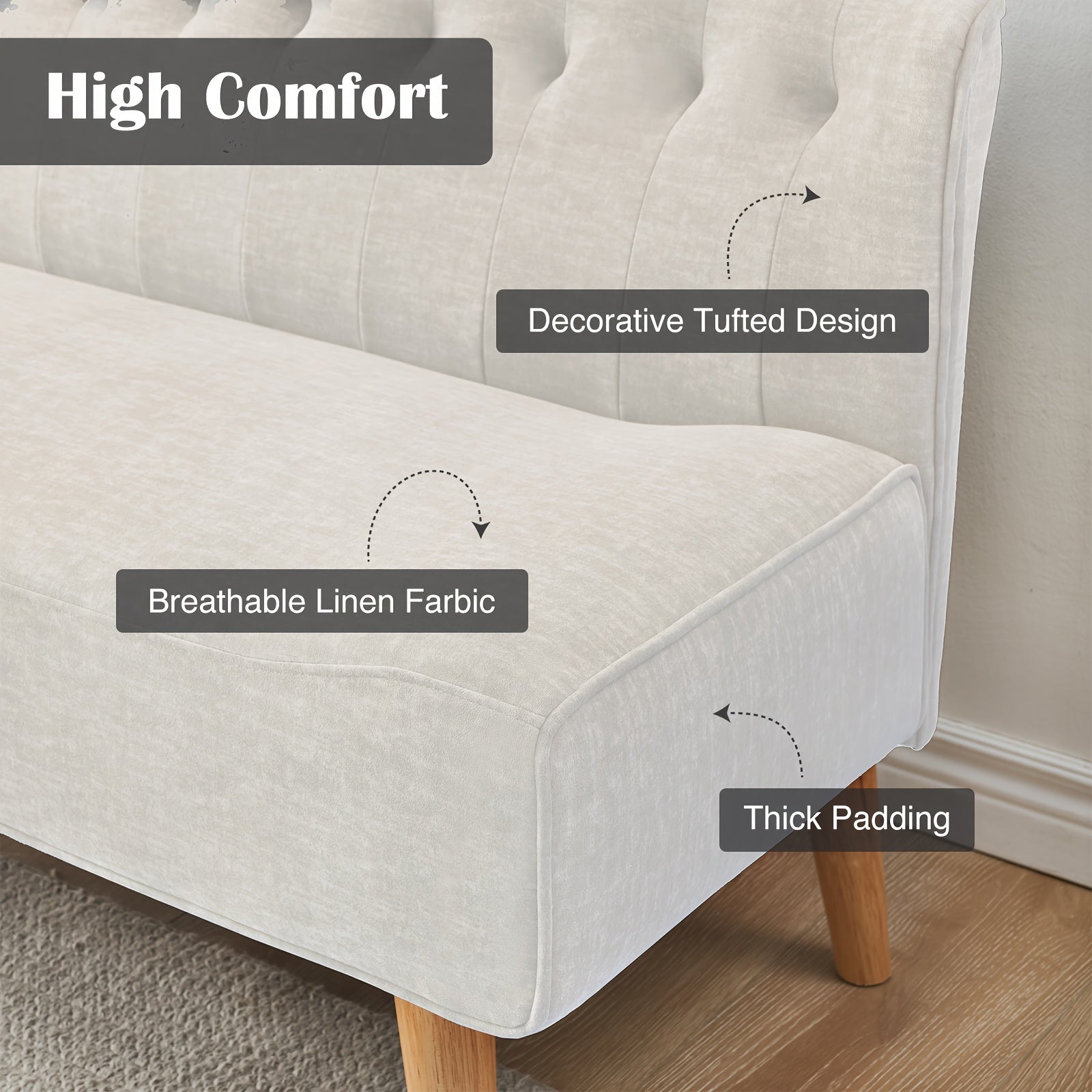 Stable & Robust Construction: This robust sofa consists of a sturdy eucalyptus wood frame, rubberwood legs, and a high-quality linen-look fabric cover that can support up to 150 kg. The natural solid wood legs with anti-slip pads ensure a secure stand and are gentle on your floor.