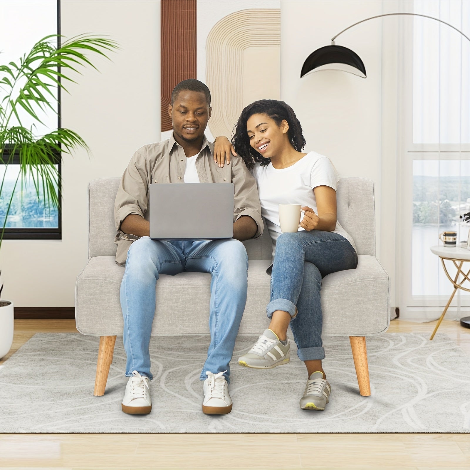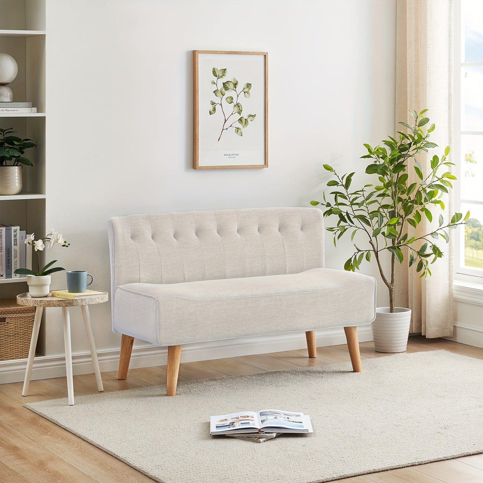 Minimalist Sofa: This 117 cm 2-seater fabric sofa with a linen look features smooth lines, a classic design, and a soft touch. The simple yet elegant look blends seamlessly into your existing living concept.
