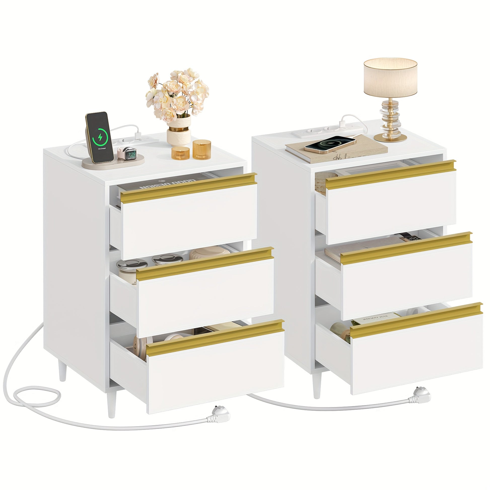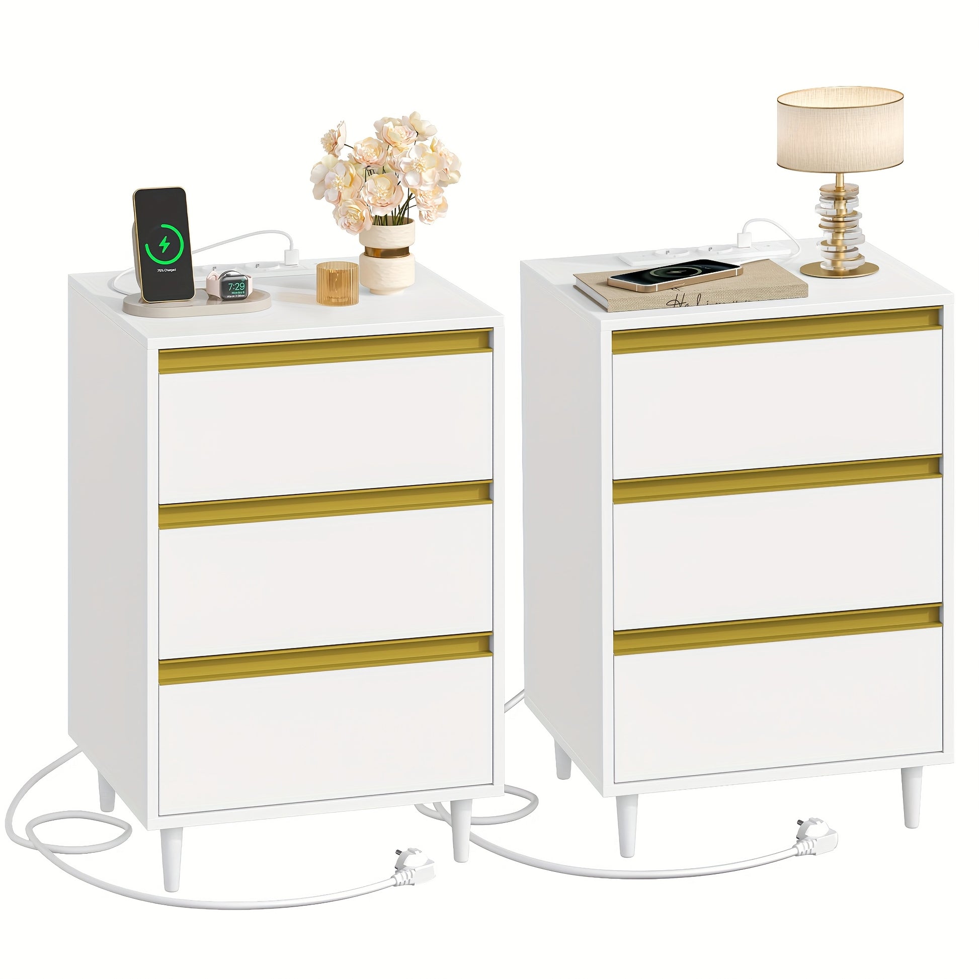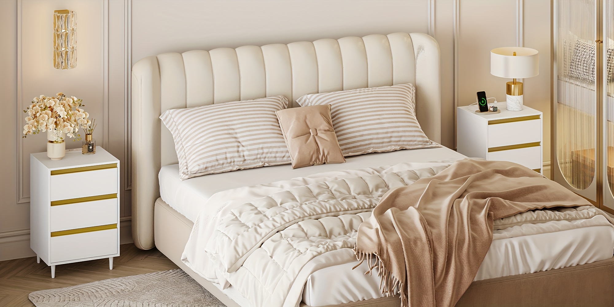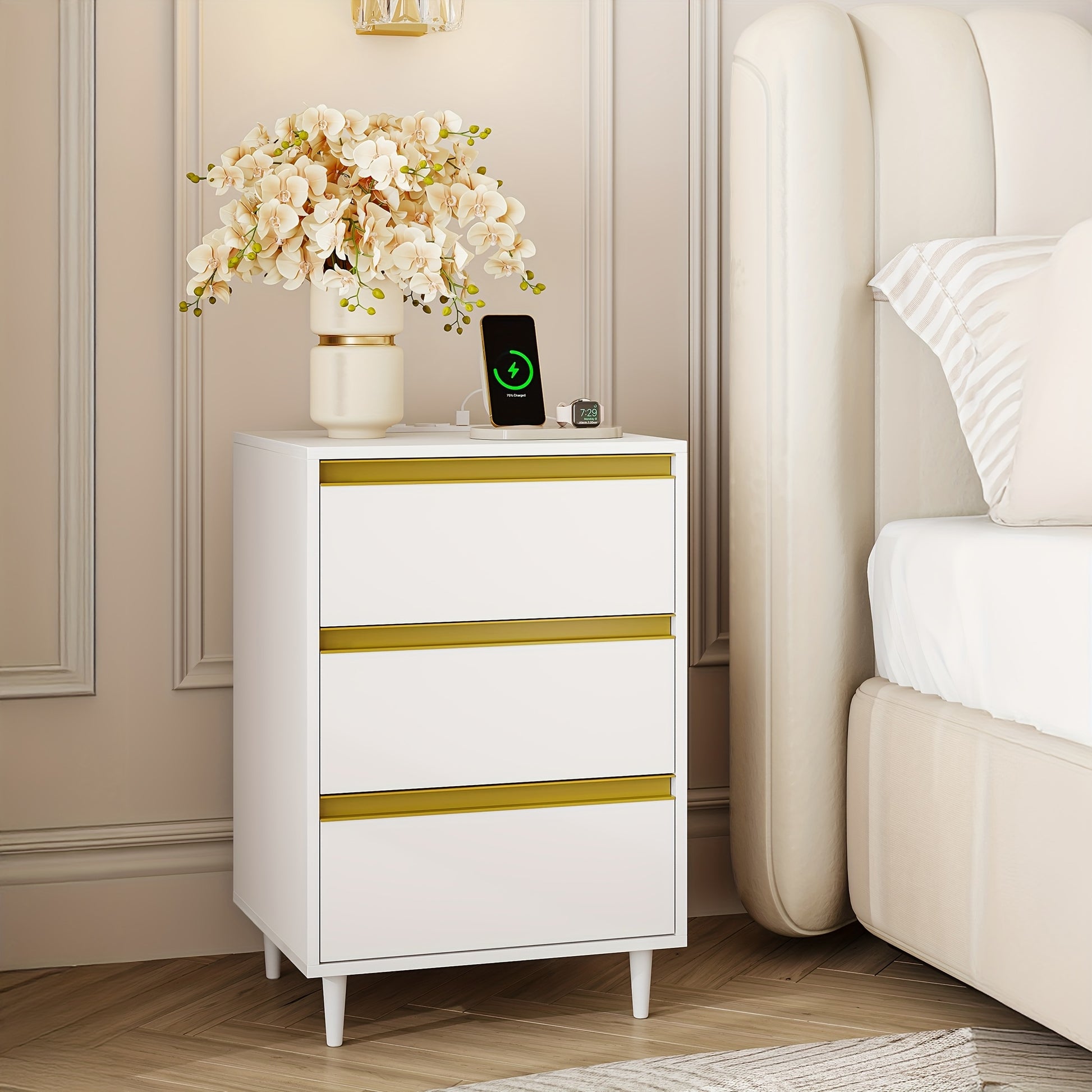 4. [Stylish Design] The nightstand showcases golden handles paired with a white finish, emphasizing both elegance and simplicity. Its clean and generous design, along with its sleek lines, allows for seamless integration into your bedroom and living area, providing a tidy and sophisticated ambiance to your home.