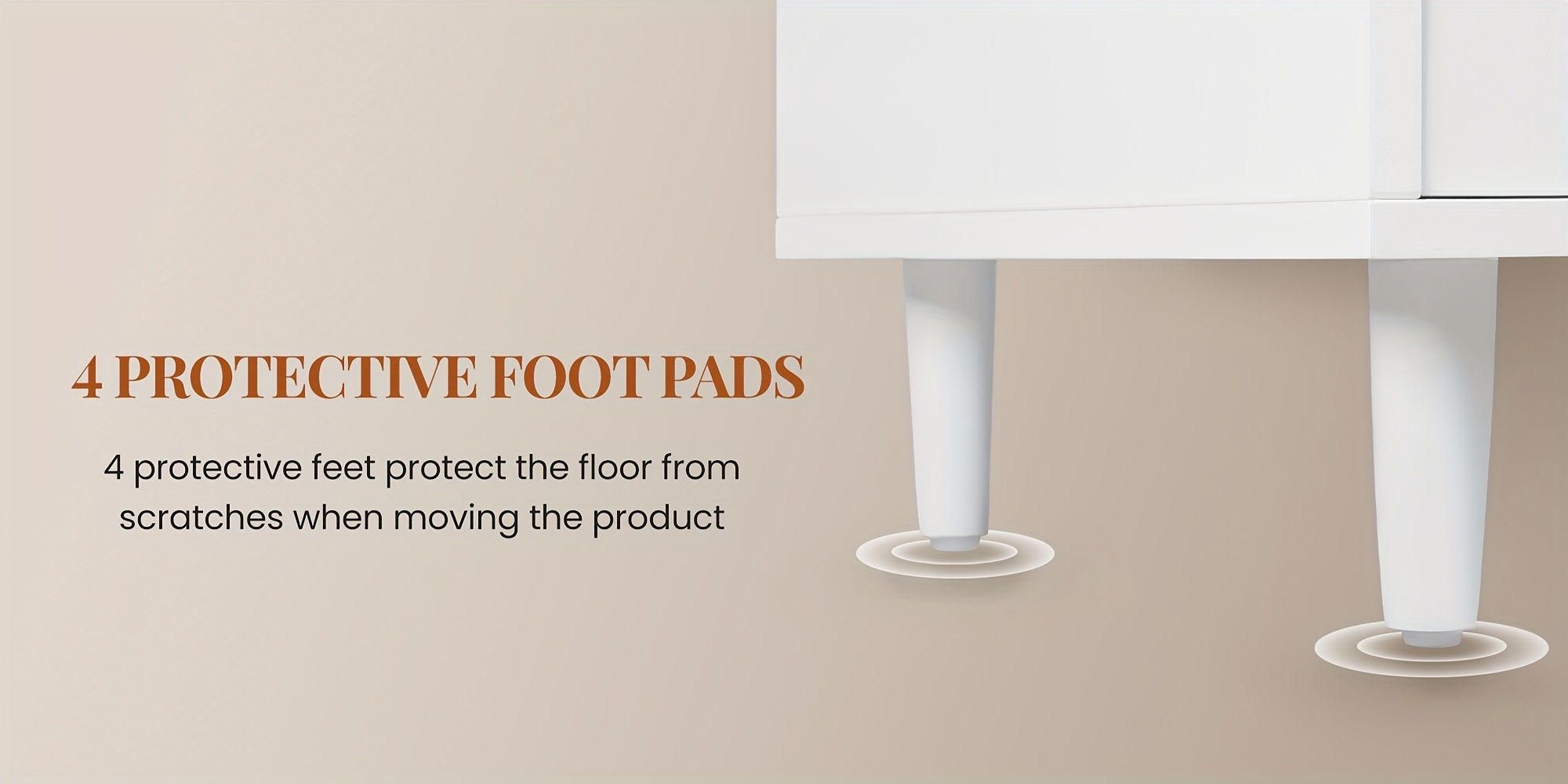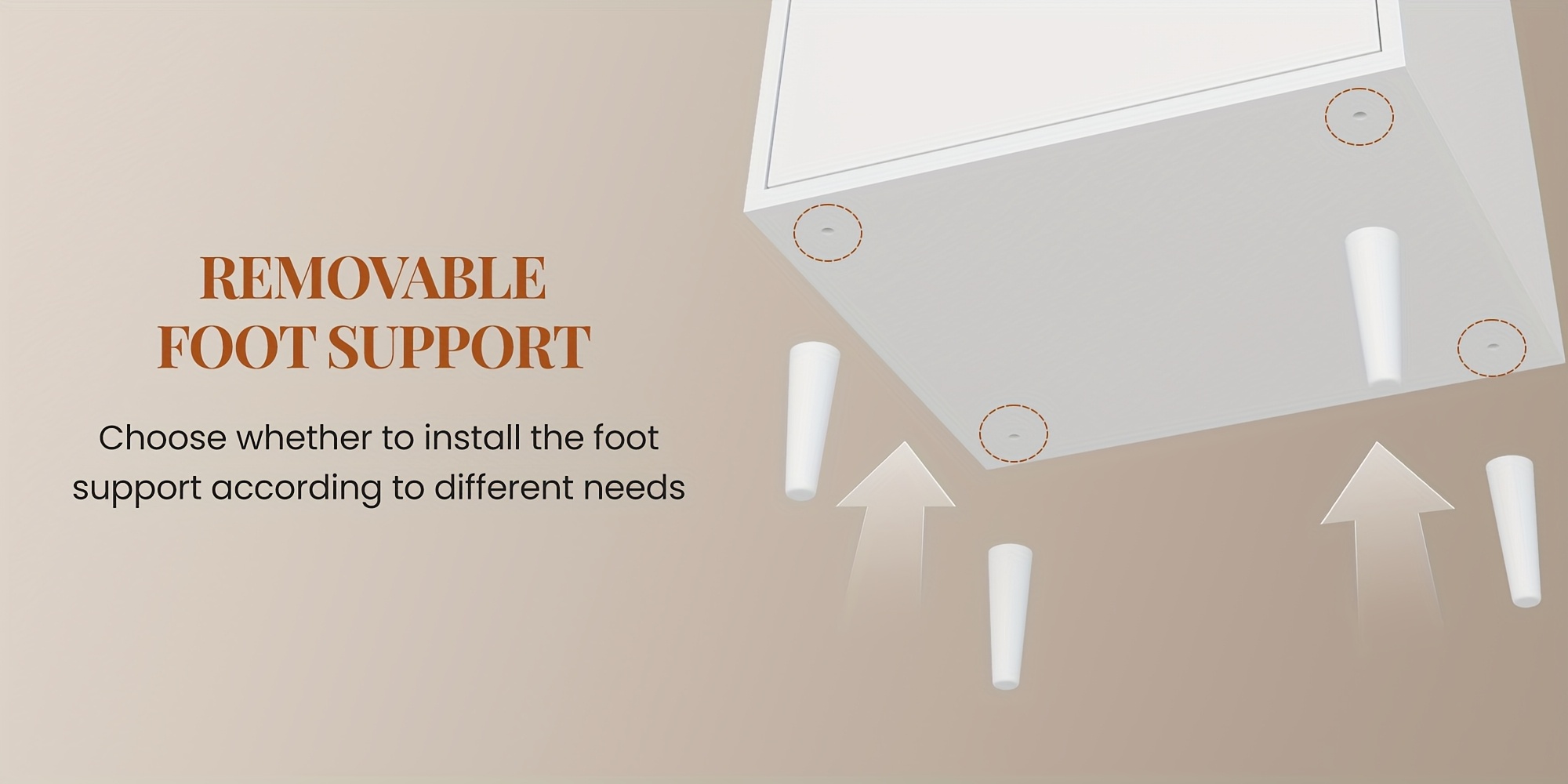 3. [Considerate Design] The nightstand is equipped with four legs to make it easier to clean beneath it. Additionally, you can easily attach or remove the legs to accommodate various bed heights. The anti-slip pads on the legs enable quiet movement and safeguard the floor from damage.