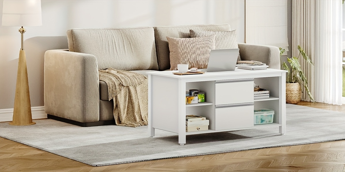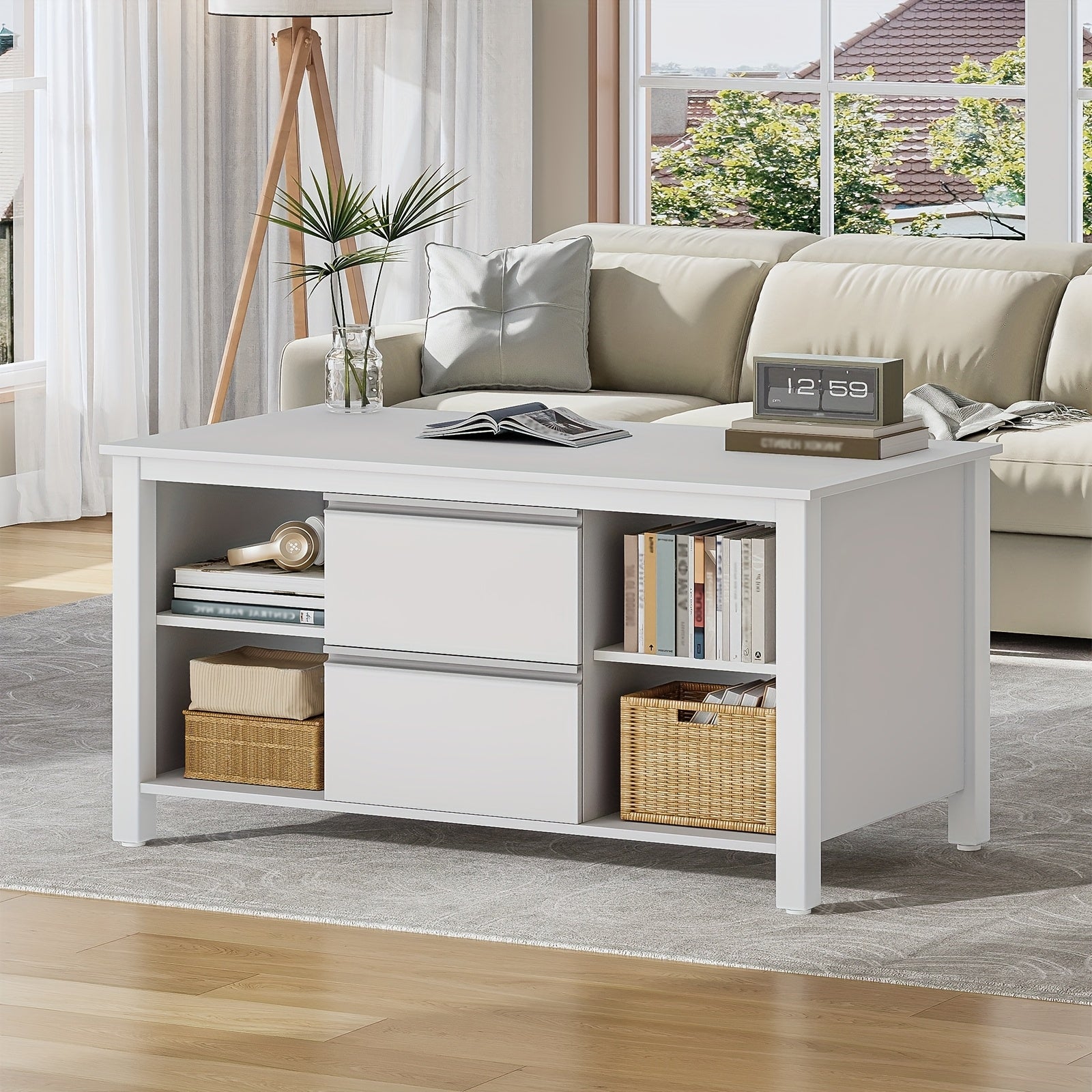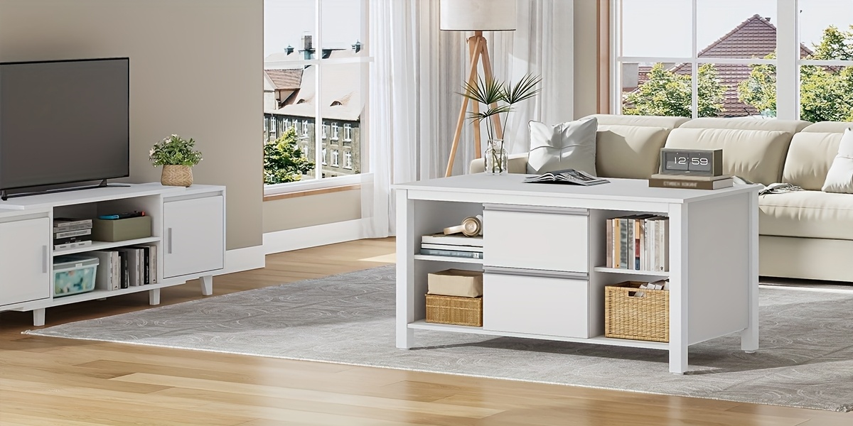 1. [Contemporary Minimalist Design] The clean white matte surface paired with silver drawer pulls provides the coffee table with a stylish, minimalist, and contemporary look that seamlessly fits into various interior designs, such as Nordic, modern, and industrial. It's an excellent option for your living space.