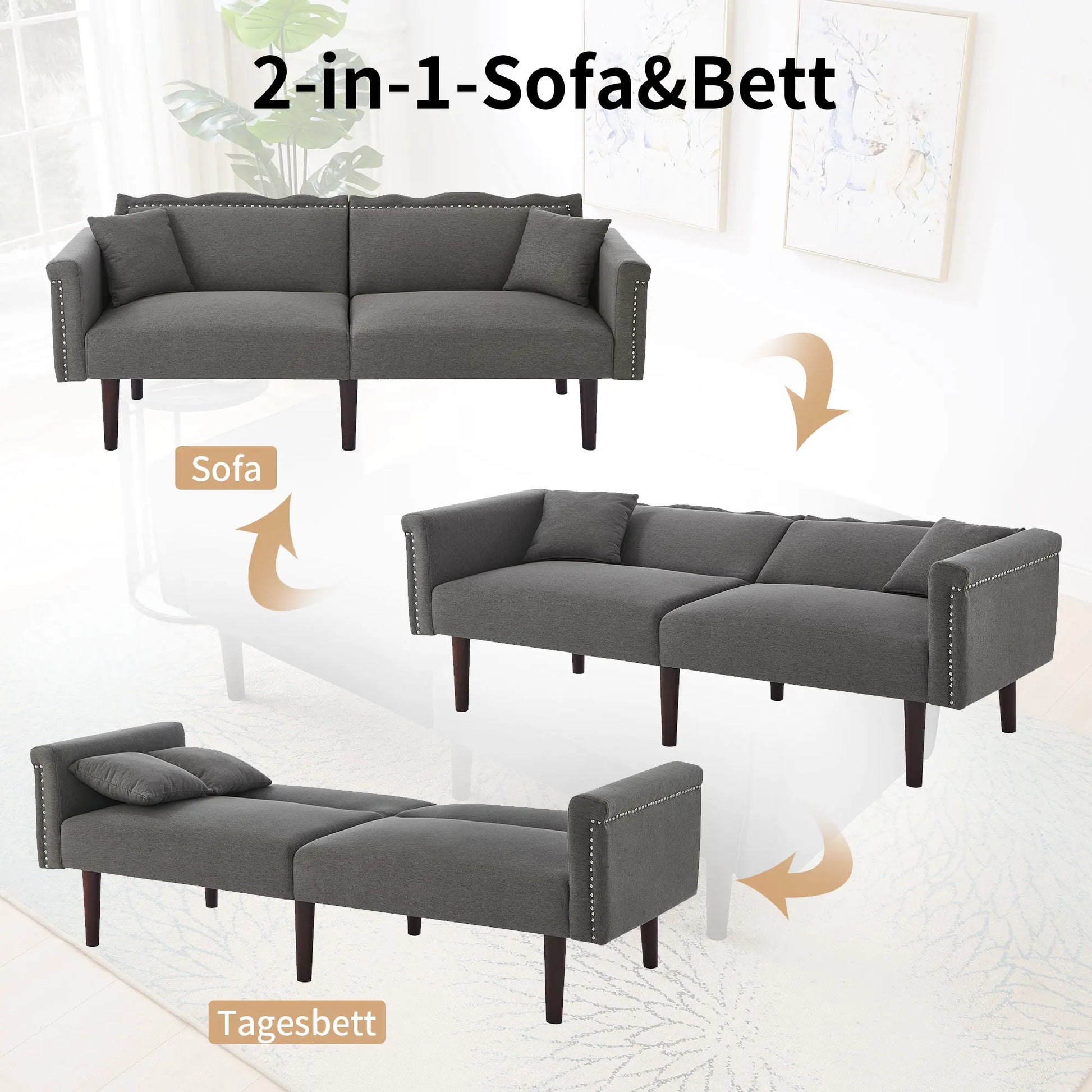 [2-in-1 multi-function sofa bed] Two-seater sofa, sofa with reclining function, independently adjustable double backrests, metal decorations, cotton-linen fabric, high-density foam