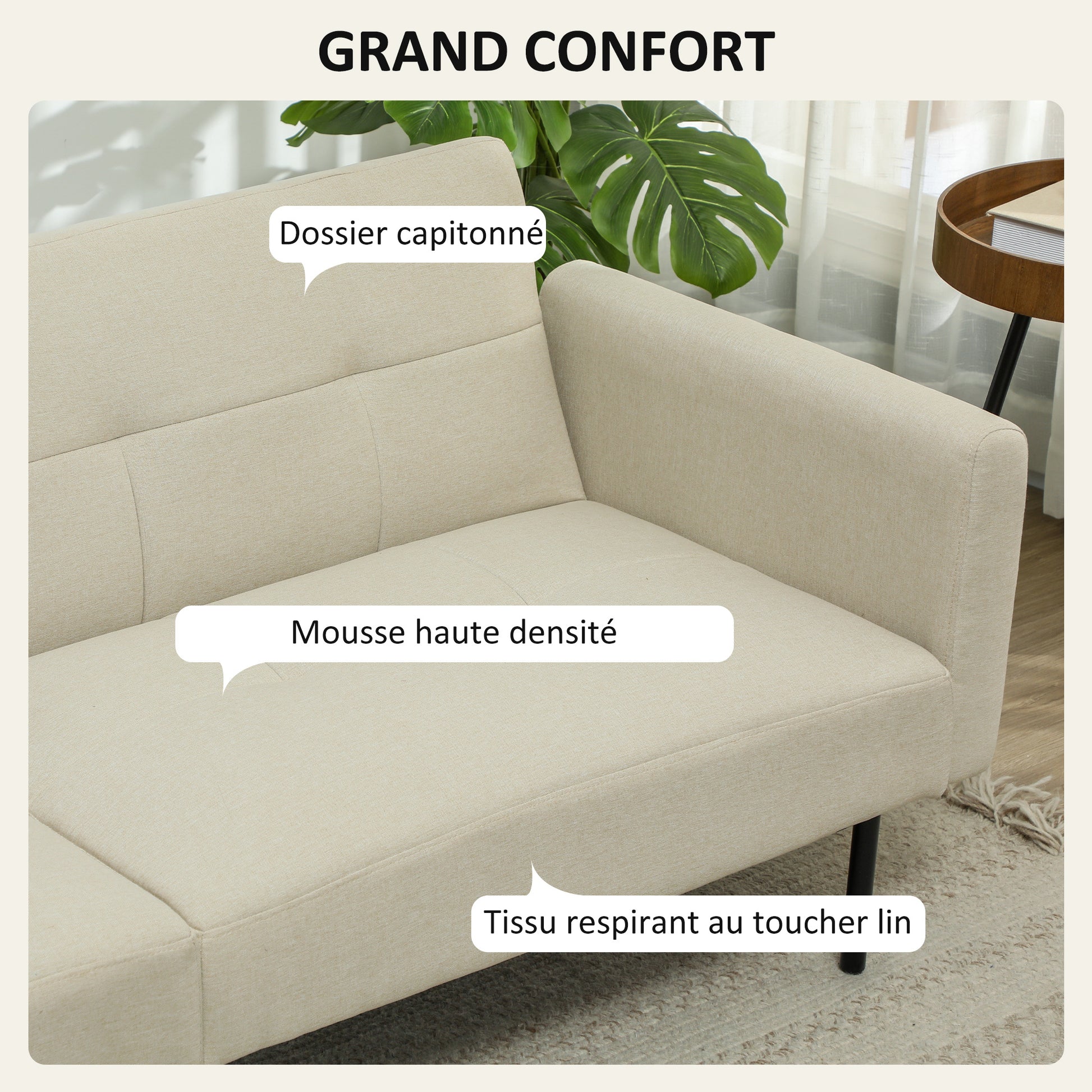 Discover the HOMCOM sofa bed, a 2-in-1 that converts from sofa to bed with a click-clack mechanism. Three backrest angles up to 180°. High-density foam padding and S-shaped springs for optimal comfort day and night.