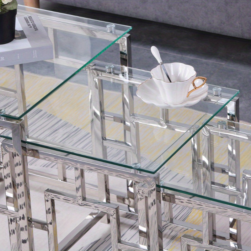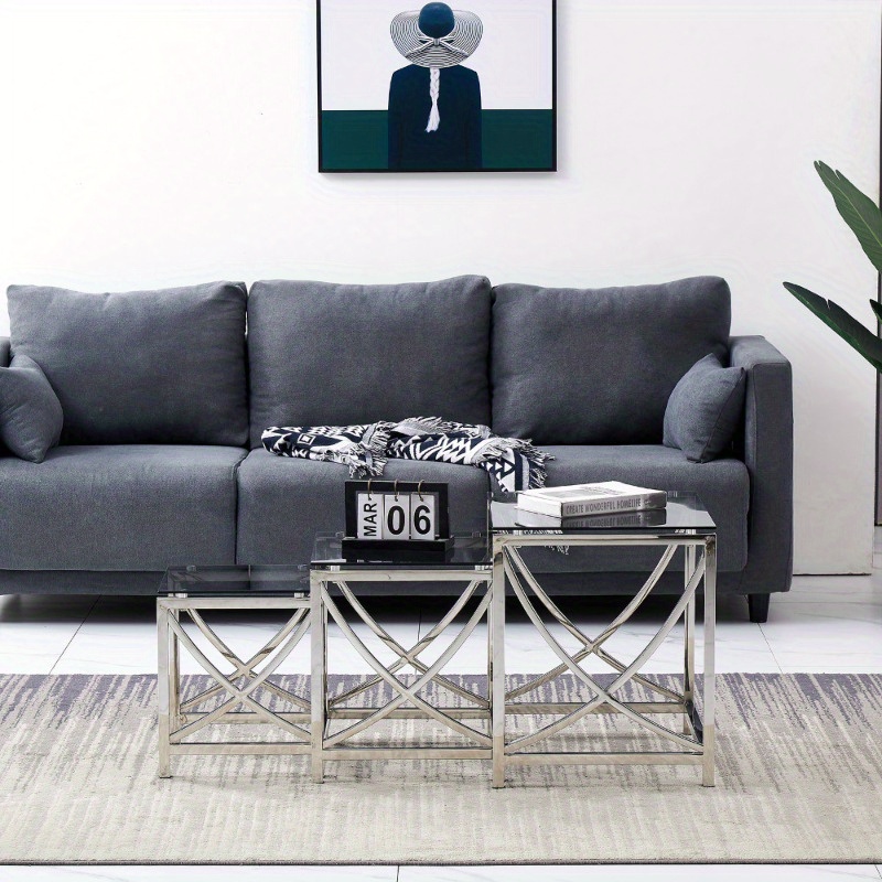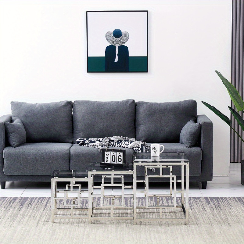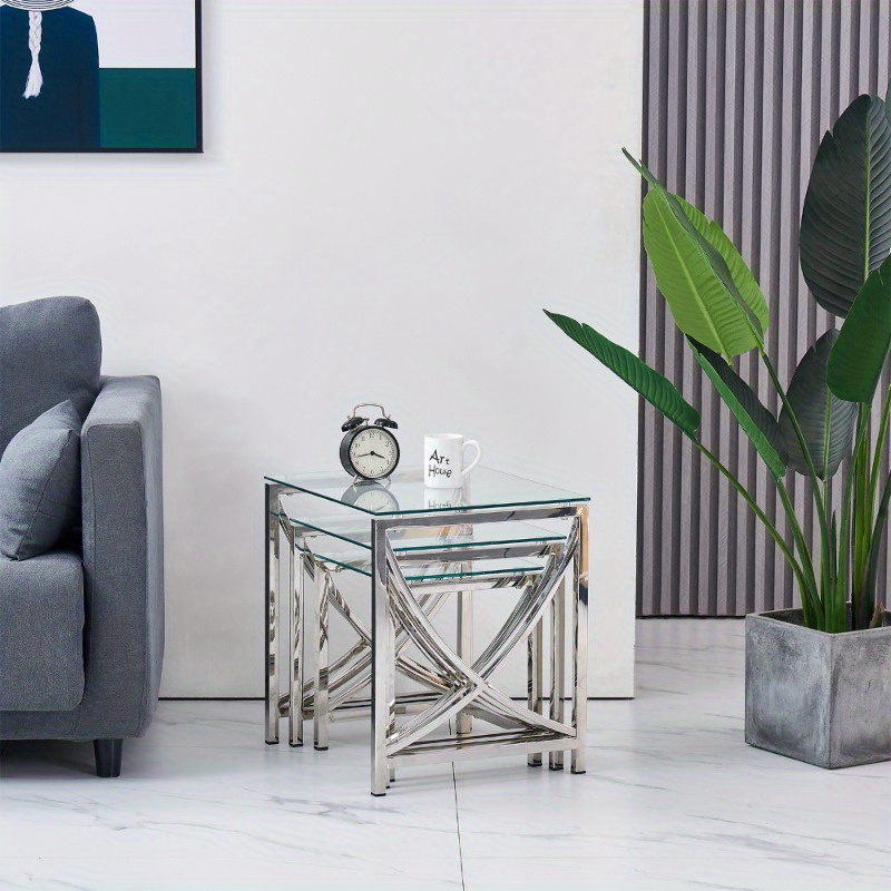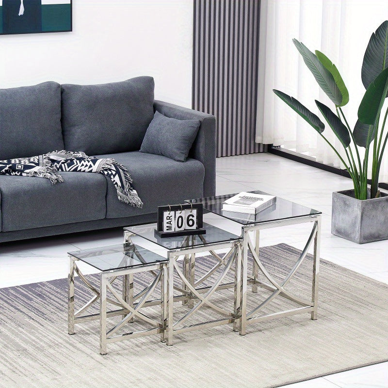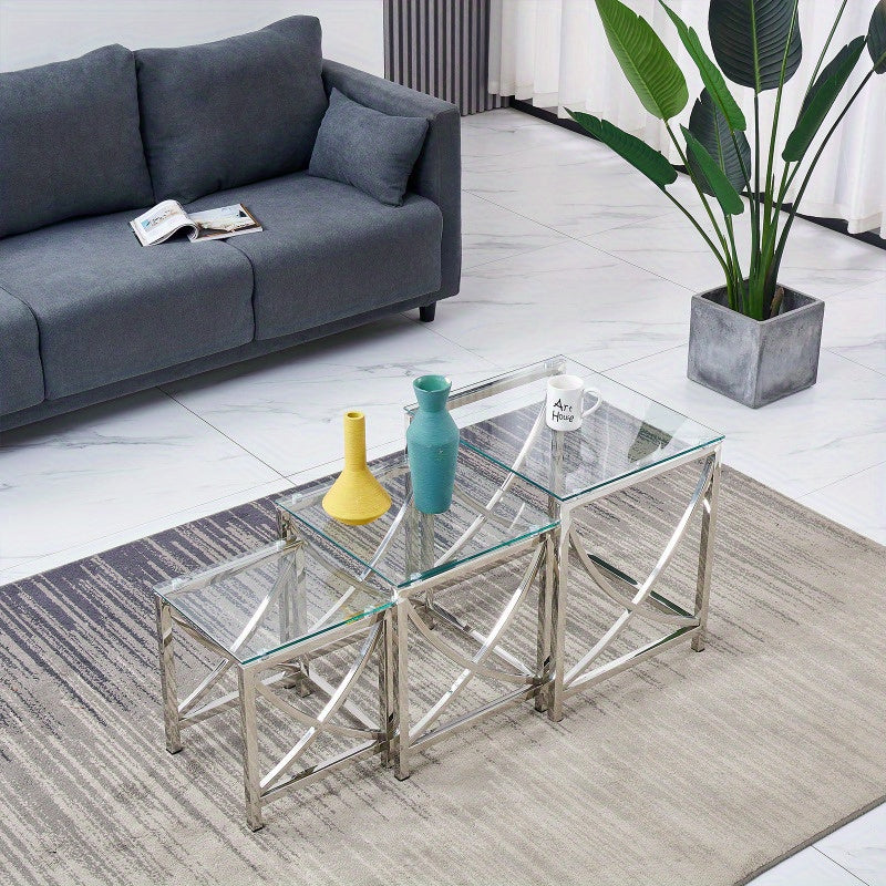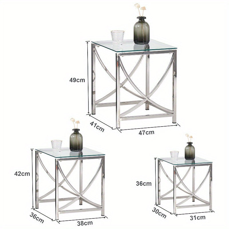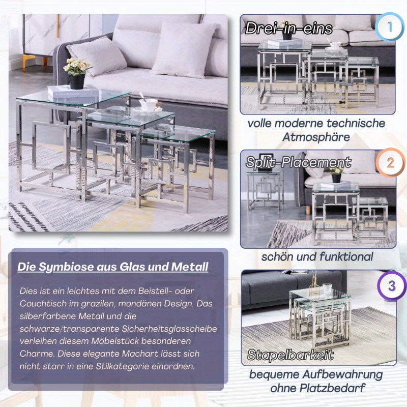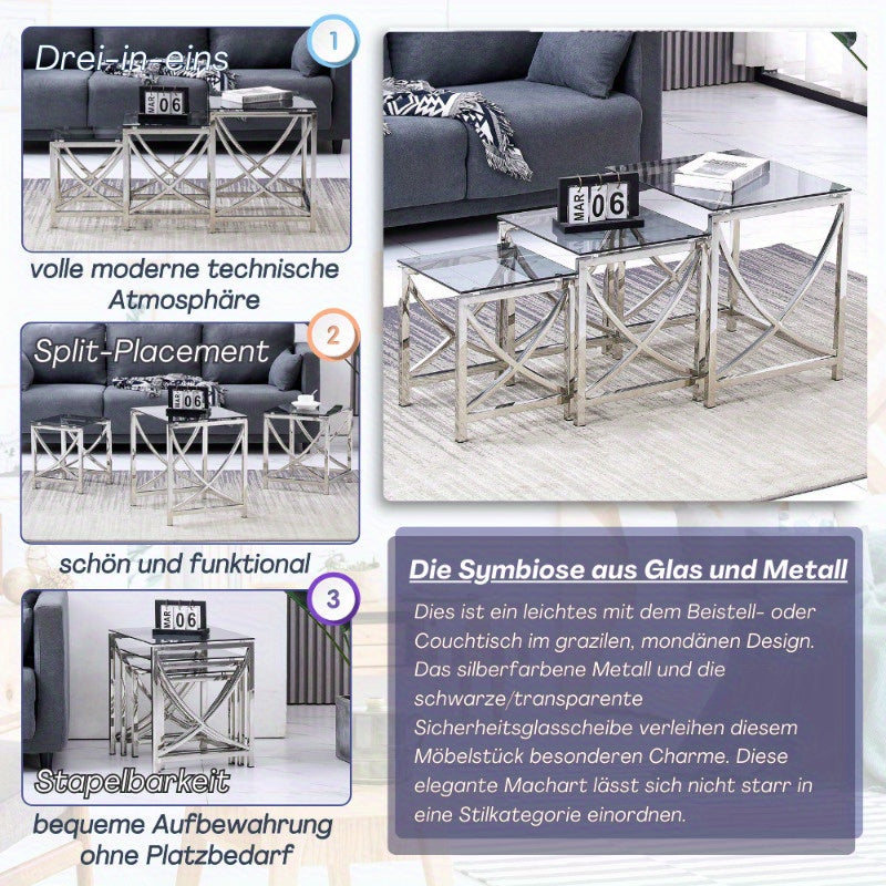 JYMTOM new lifestyle trendThis highly versatile and harmonious trio of side tables in a trendy Silvery design will be a beautiful highlight in your home. Whether placed side by side or separately, these side tables impress with their modern design and intelligent functionality.