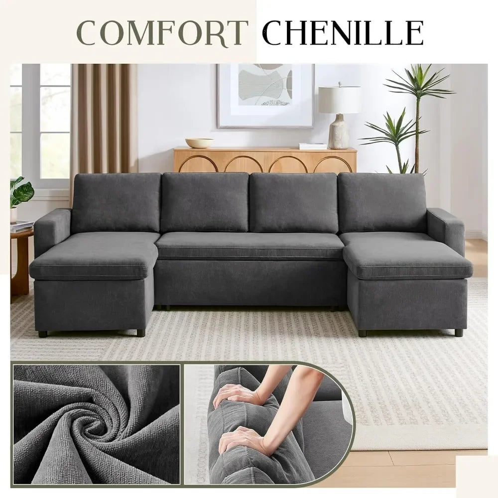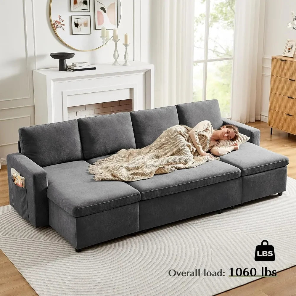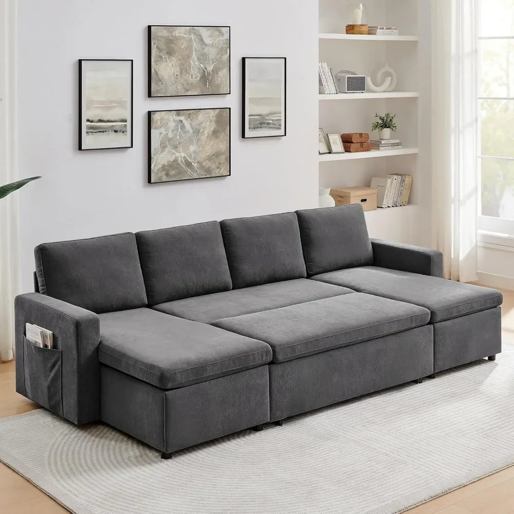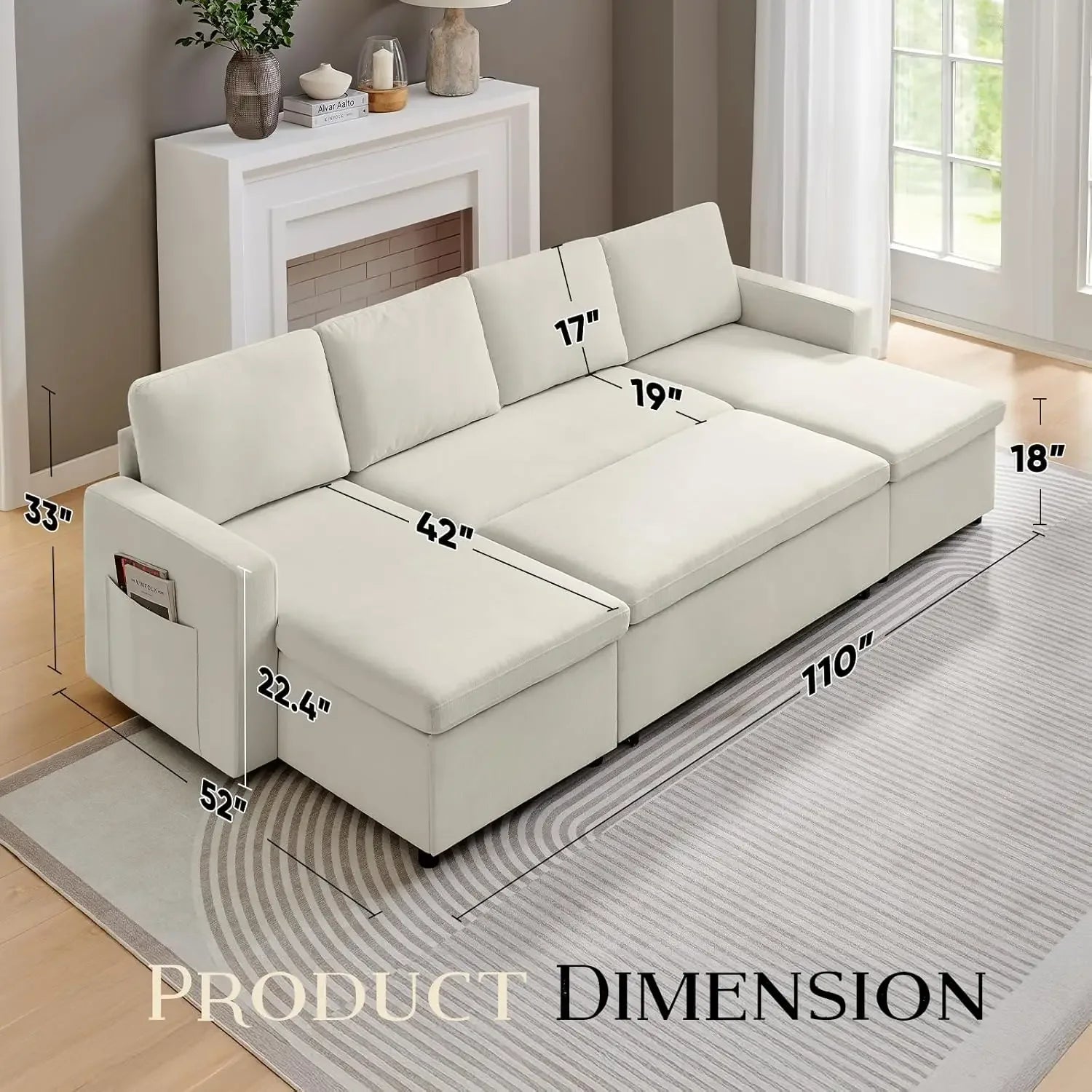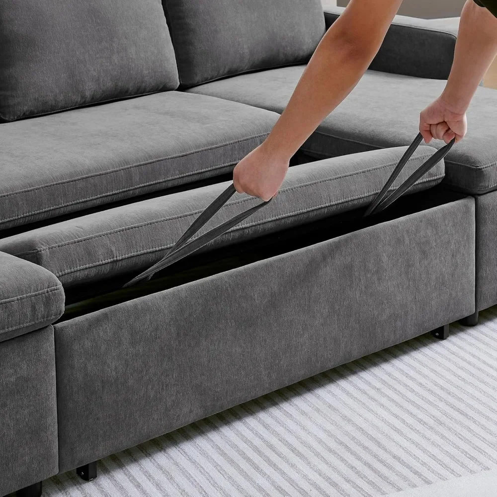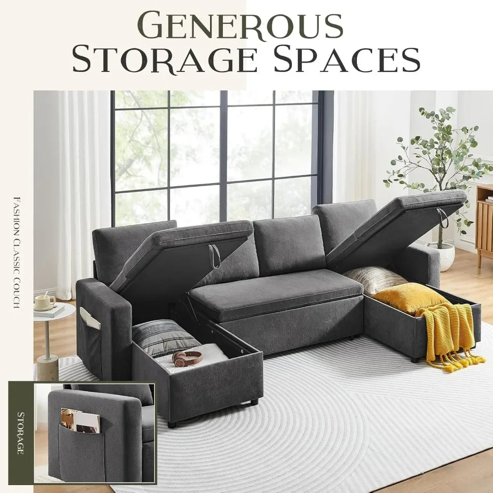 - Ample Storage Space: This sectional couches for living room features 2 spacious storage compartment under the chaise, perfect for storing blankets, toys, or pillows. Additionally, there are storage pockets on the side of the sofa bed, ideal for holding remotes, charging cables, and other essentials