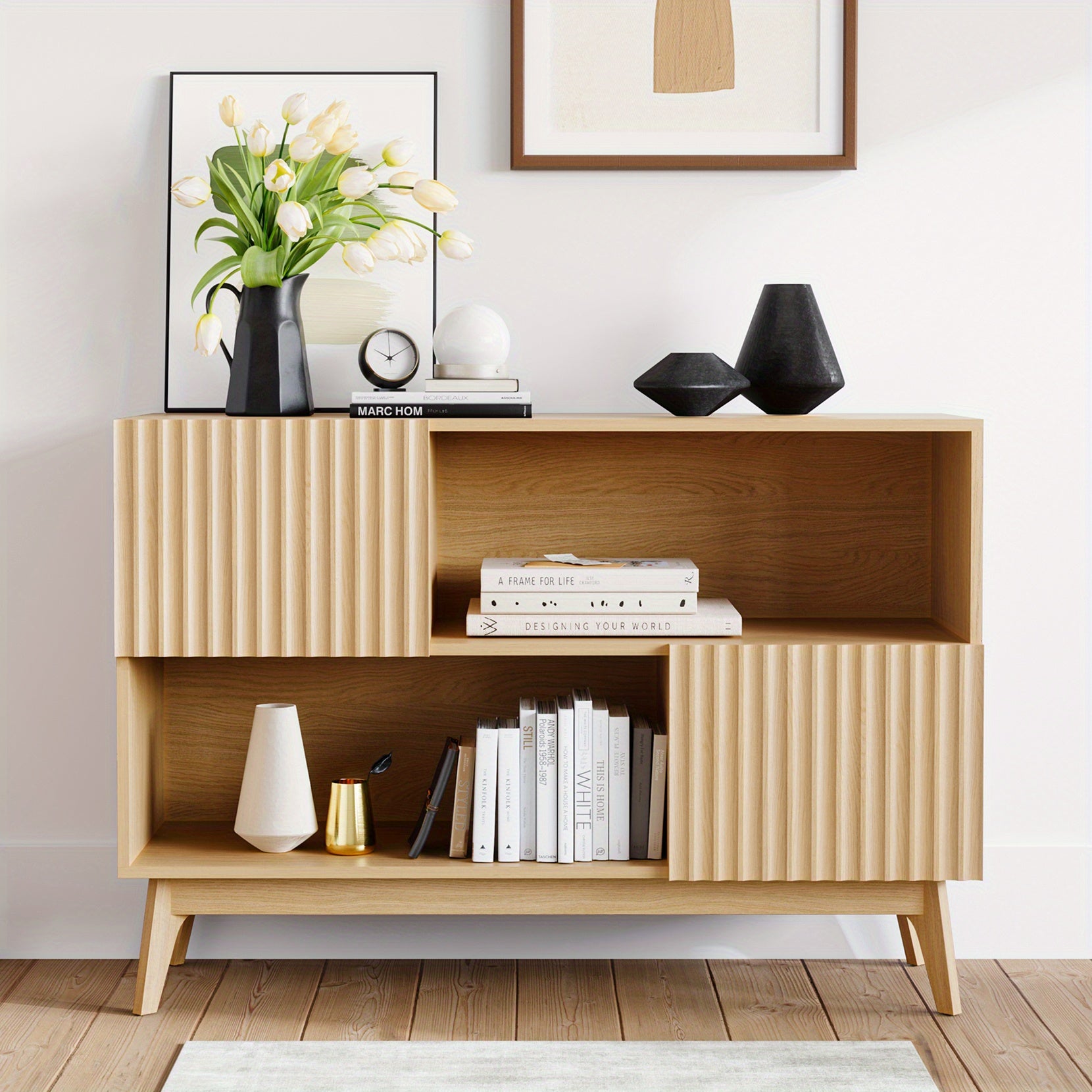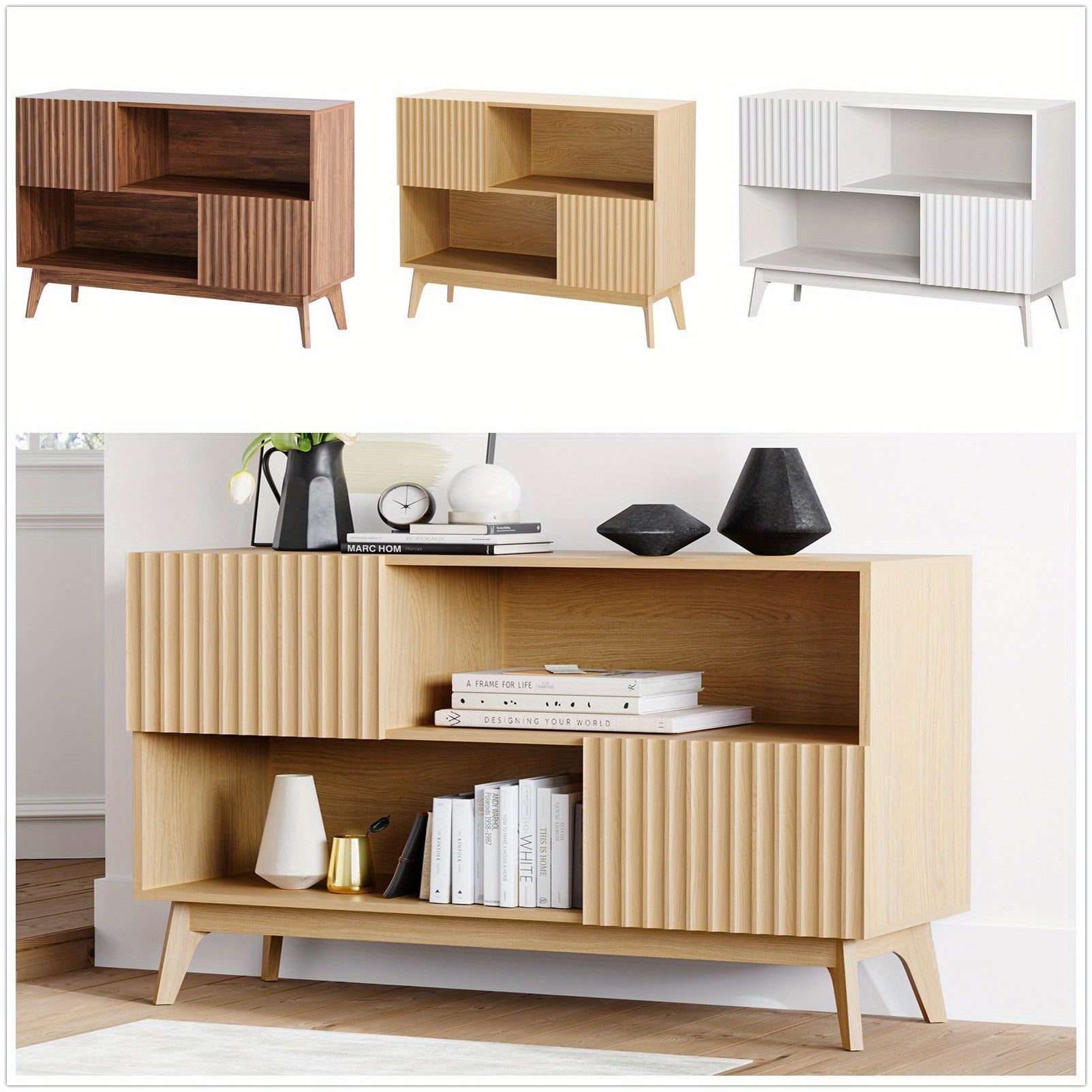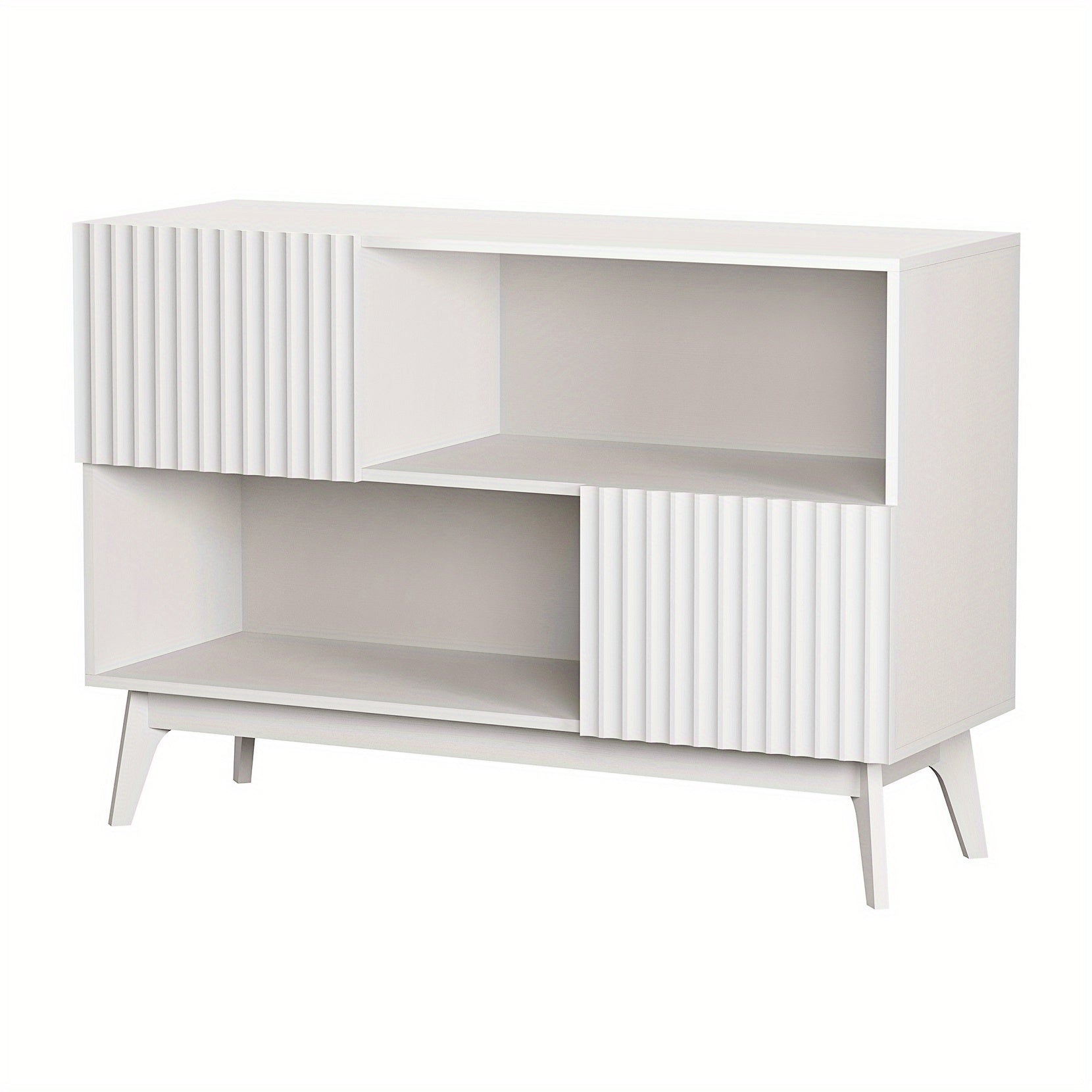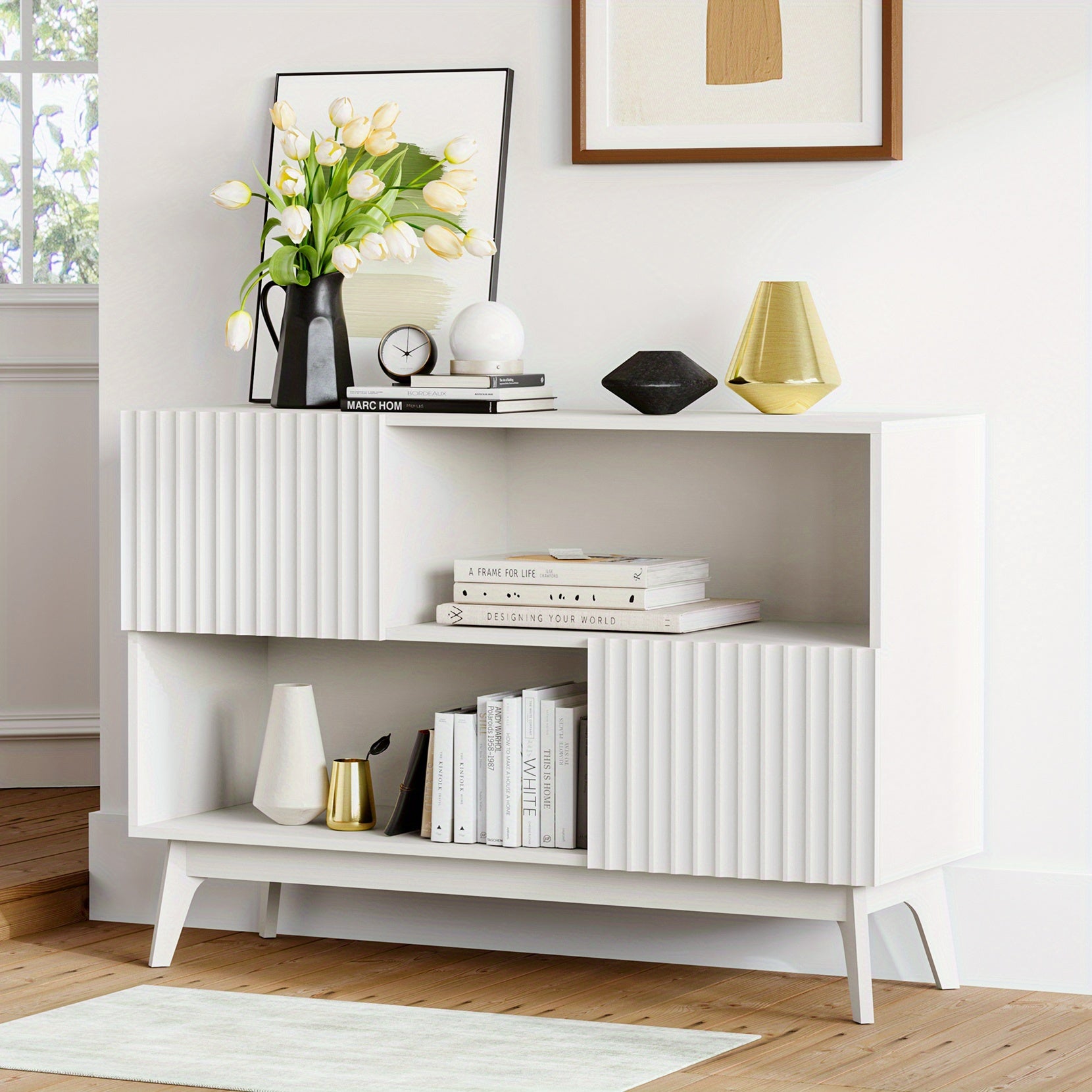 Ample storage space: Featuring two swing door cabinets and two open niches for ample storage space