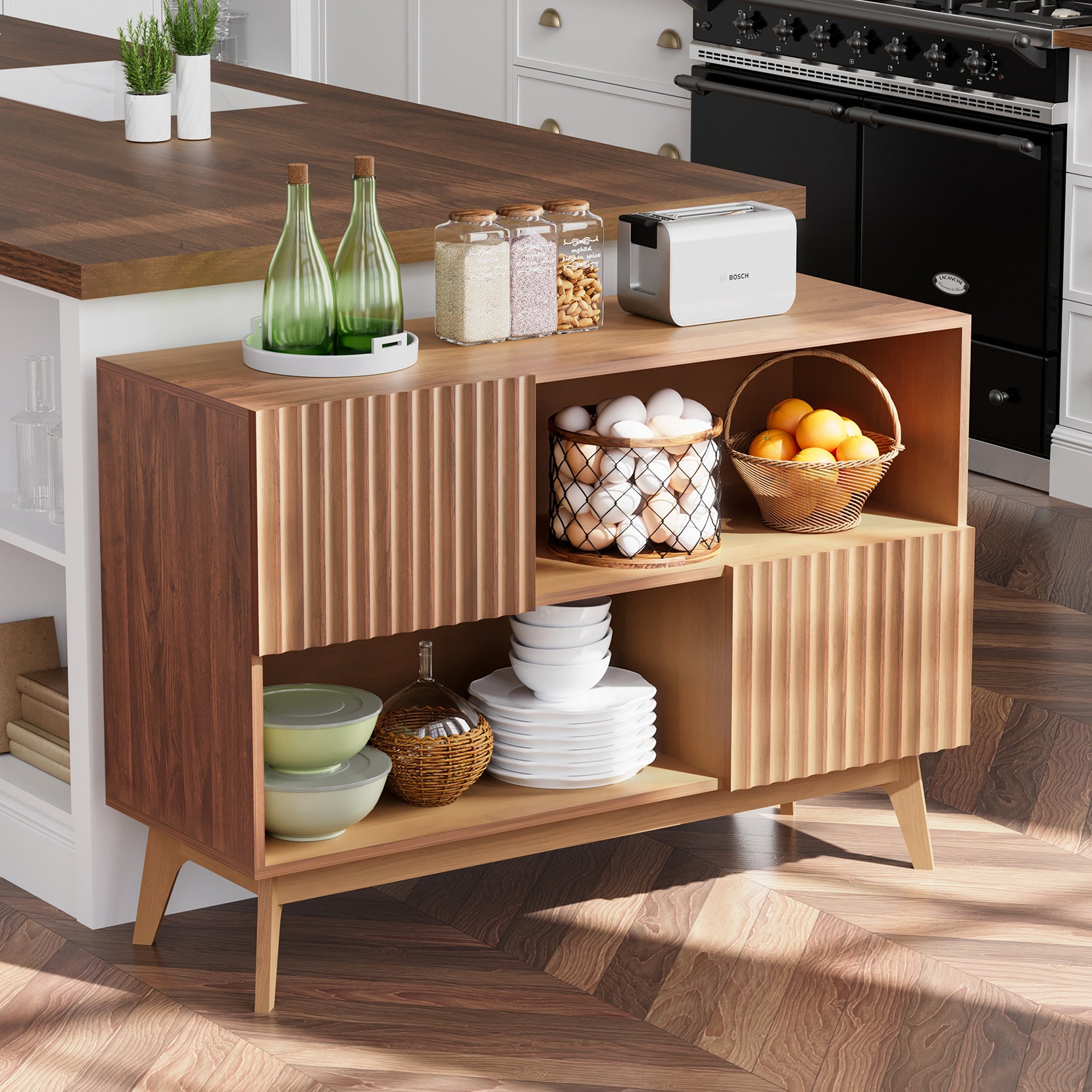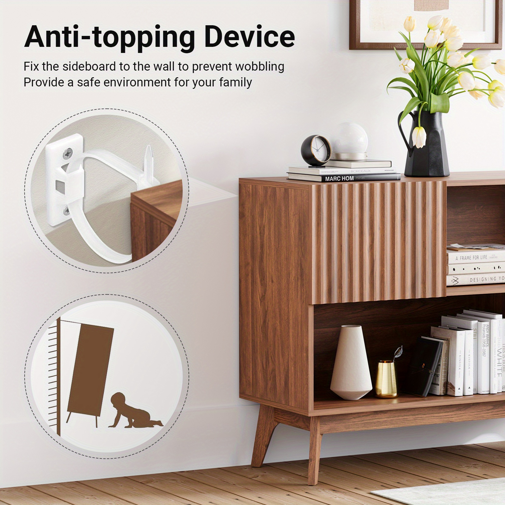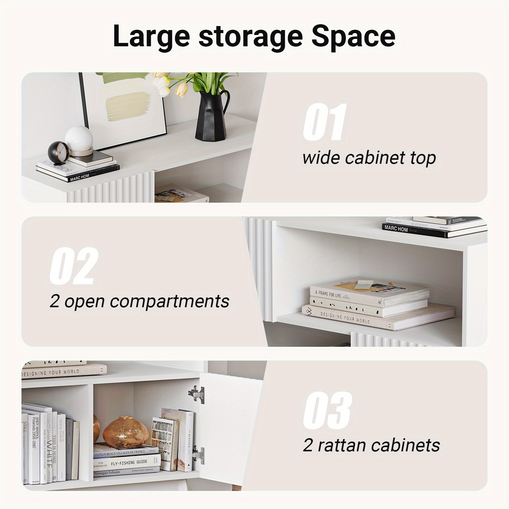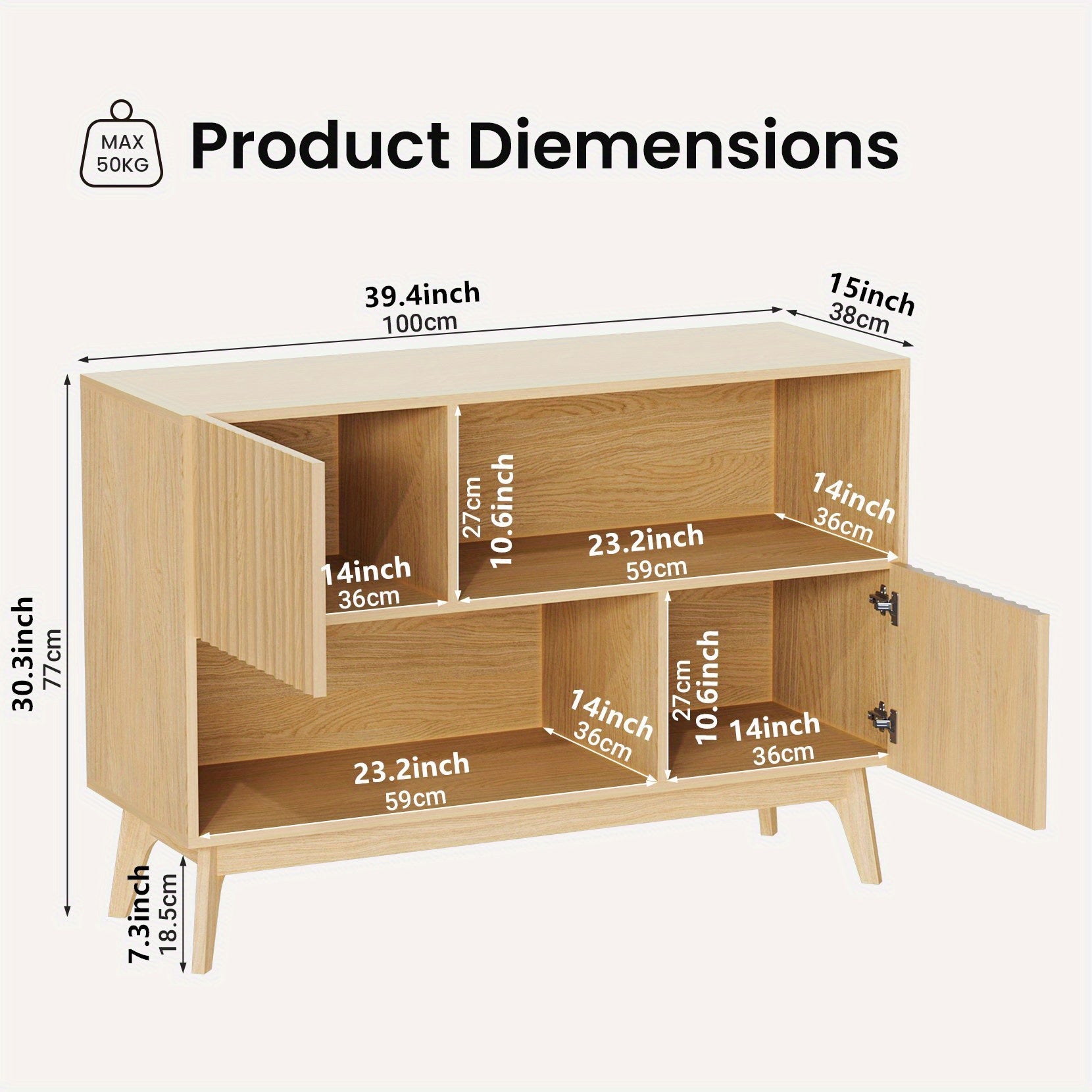 Ample storage space: Featuring two swing door cabinets and two open niches for ample storage space