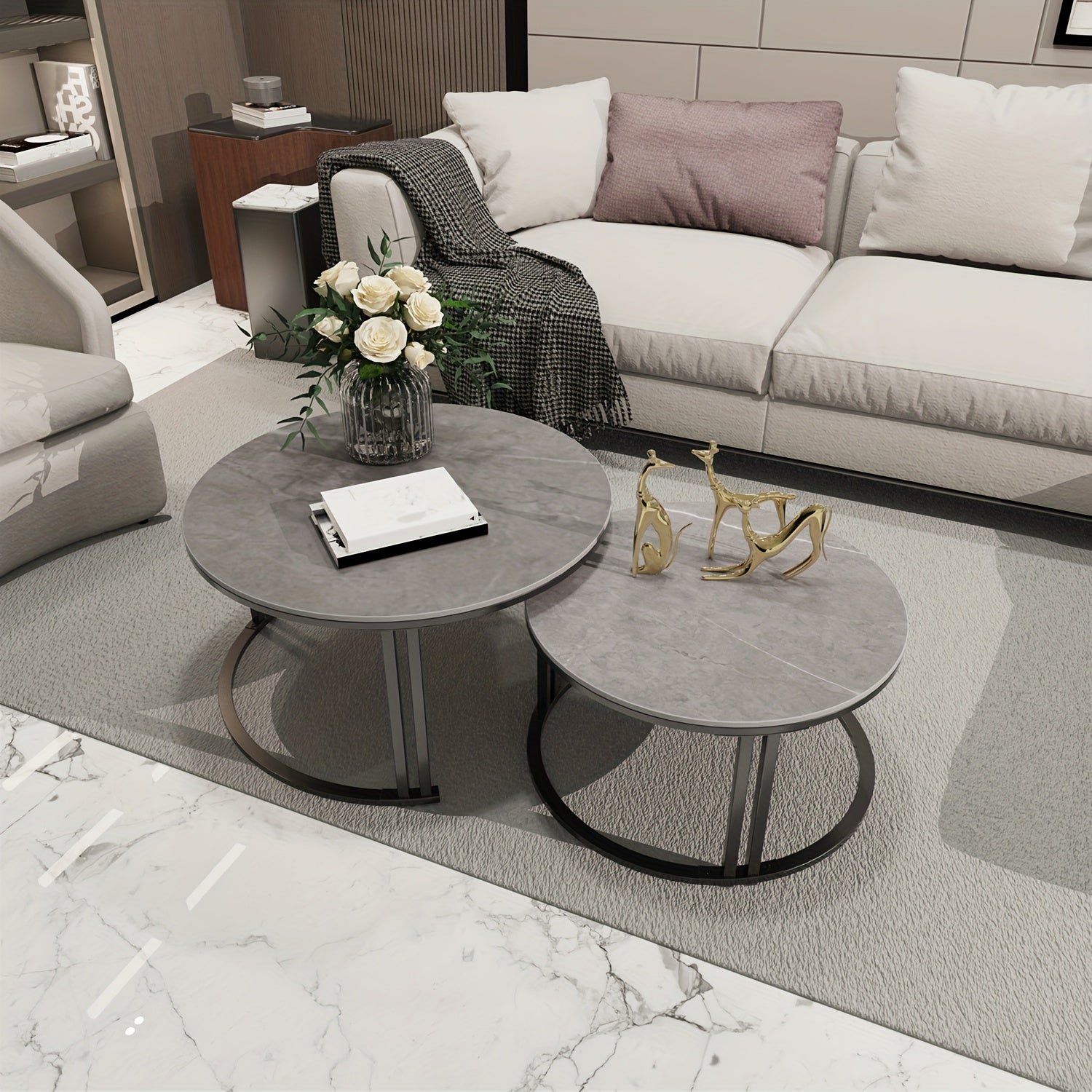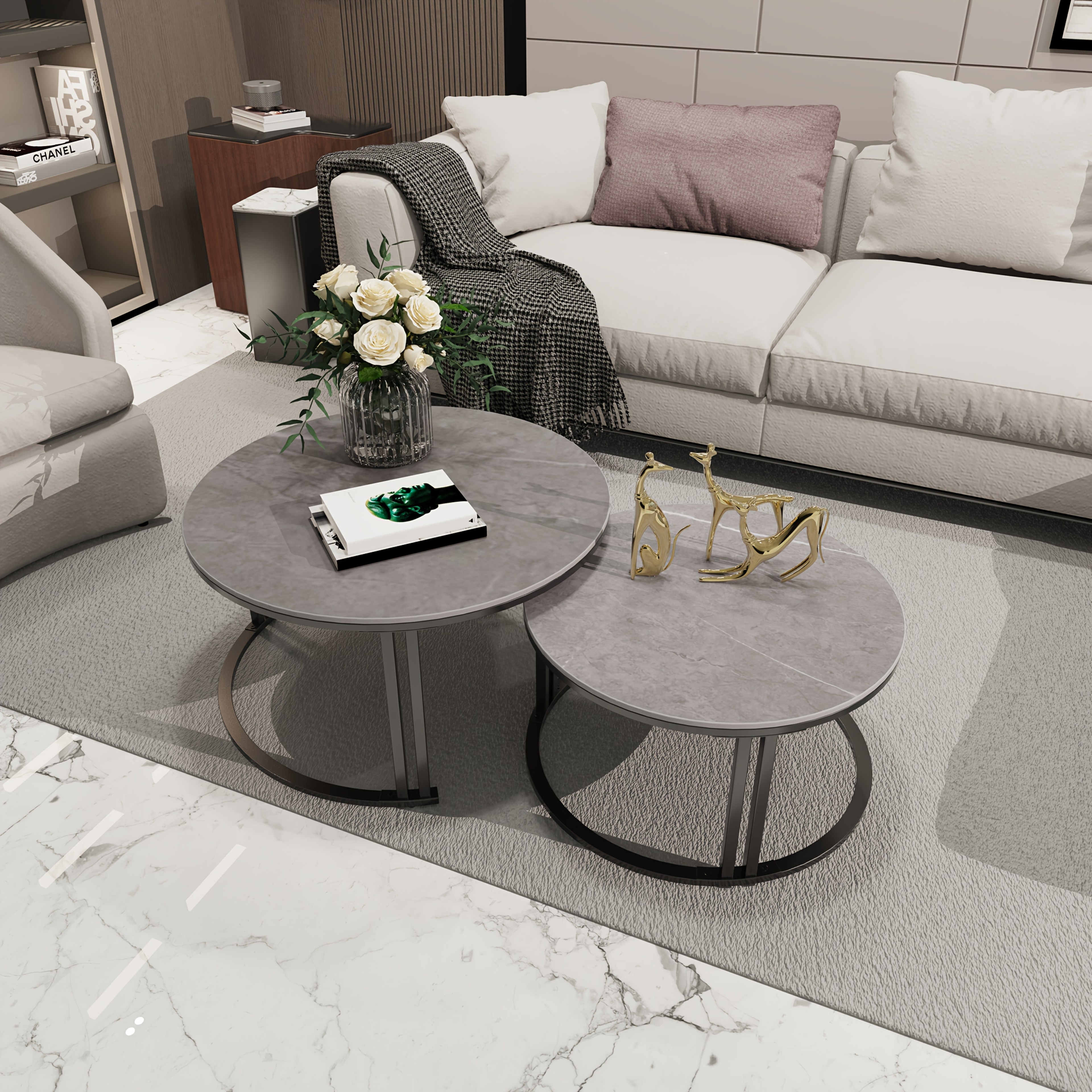 Came with set of 2 coffee tables, you can either set them together as a nested set or use them separately in different places, designed with a stylish sintered stone-top with a durable metal construction, perfect for creating a chic contemporary look, livening up your space.
